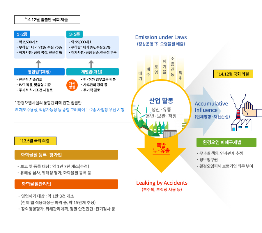 | 법적 기반 | 정부는 '환경오염시설의 통합관리에 관한 법률안'을 이해관계자 합의를 거쳐 마련하고