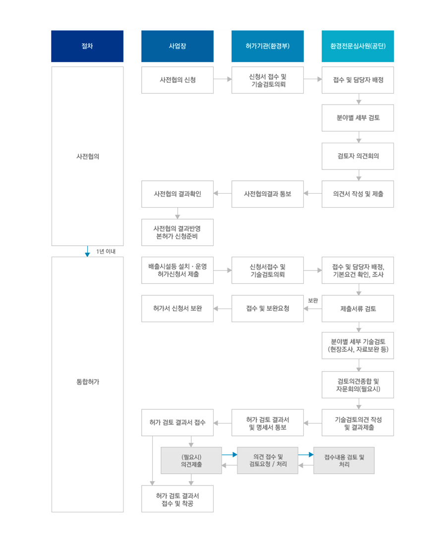 • 종전 대기 · 수질 · 토양 · 폐기물 등 환경 매체별로 관리하던 허가방식을 '17년부터는 하나로 통합허가하는 제도로 저비용 · 고효율의 최적기술을 적용하여 오염물질의 배출을 최소 · 최적화하는 환경관리방식